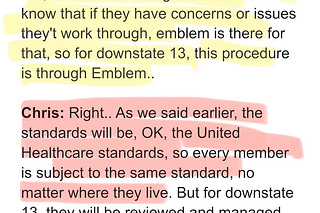 We've read the fine print. And we're right. The contract says: ”Emblem will utilize UMR systems and follow UMR protocols for the provision of UM…