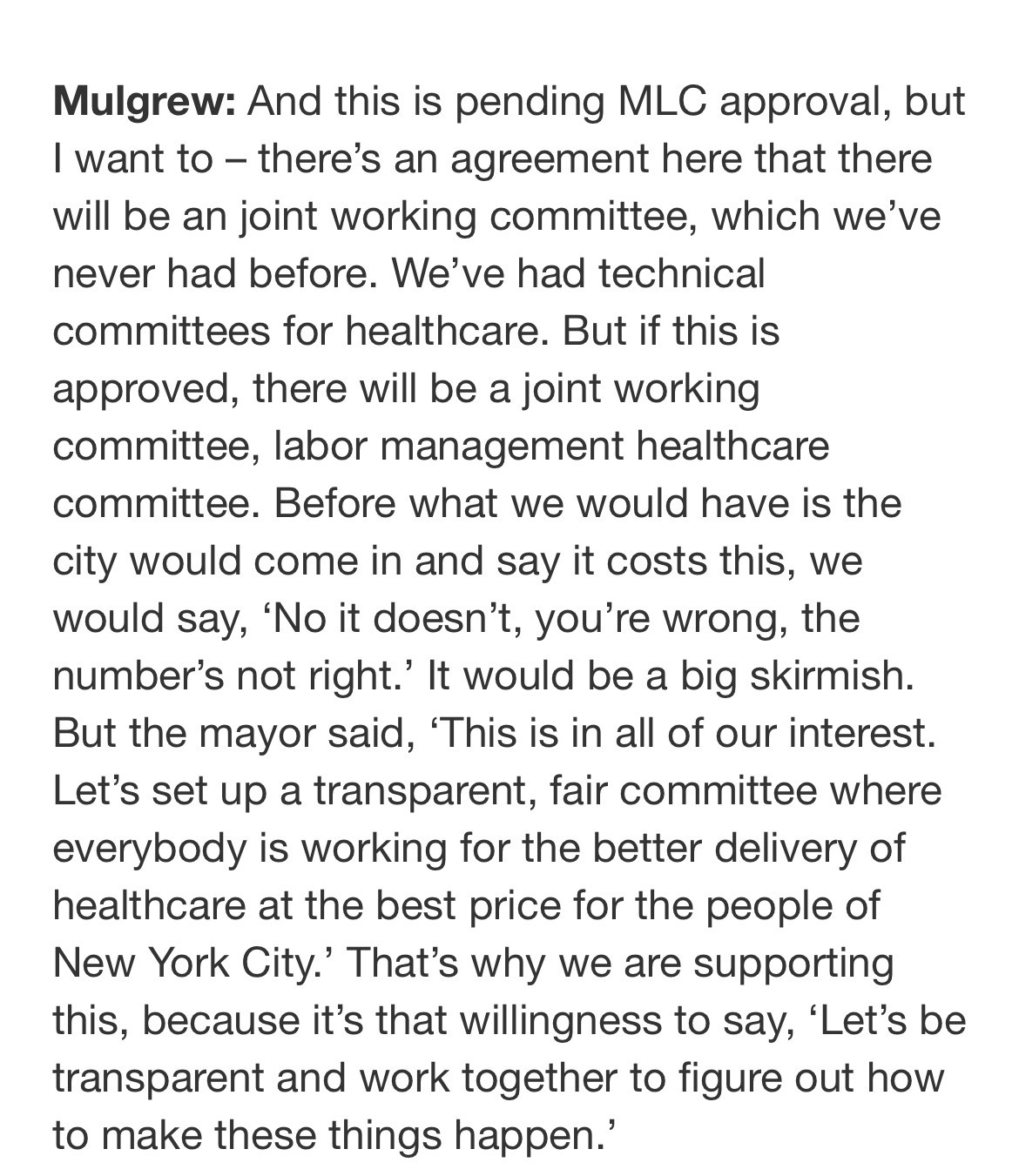 “And the city said, no. They said that because the stabilization fund is going to be exiting the stage — which was frankly one of the principal goals of the tripartite health committee.”