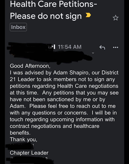 Sign the healthcare referendum petition and let Mulgrew's leadership caucus know: WE ARE THE UFT. LET US VOTE! - Repost: https://iceuftblog.blogspot.com/
