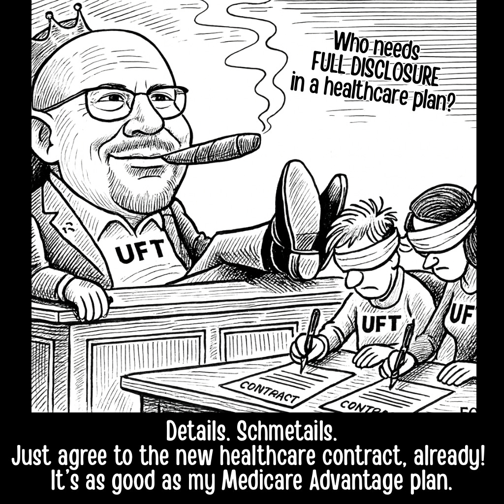 In 2018, UFT leadership failed to divulge a negotiated side letter, Appendix B, that spelled out “cost savings” schemes like Medicare Advantage before the Delegate Assembly voted to recommend the contract. Now, we are poised with a similar fate because they refuse to give us full disclosure.