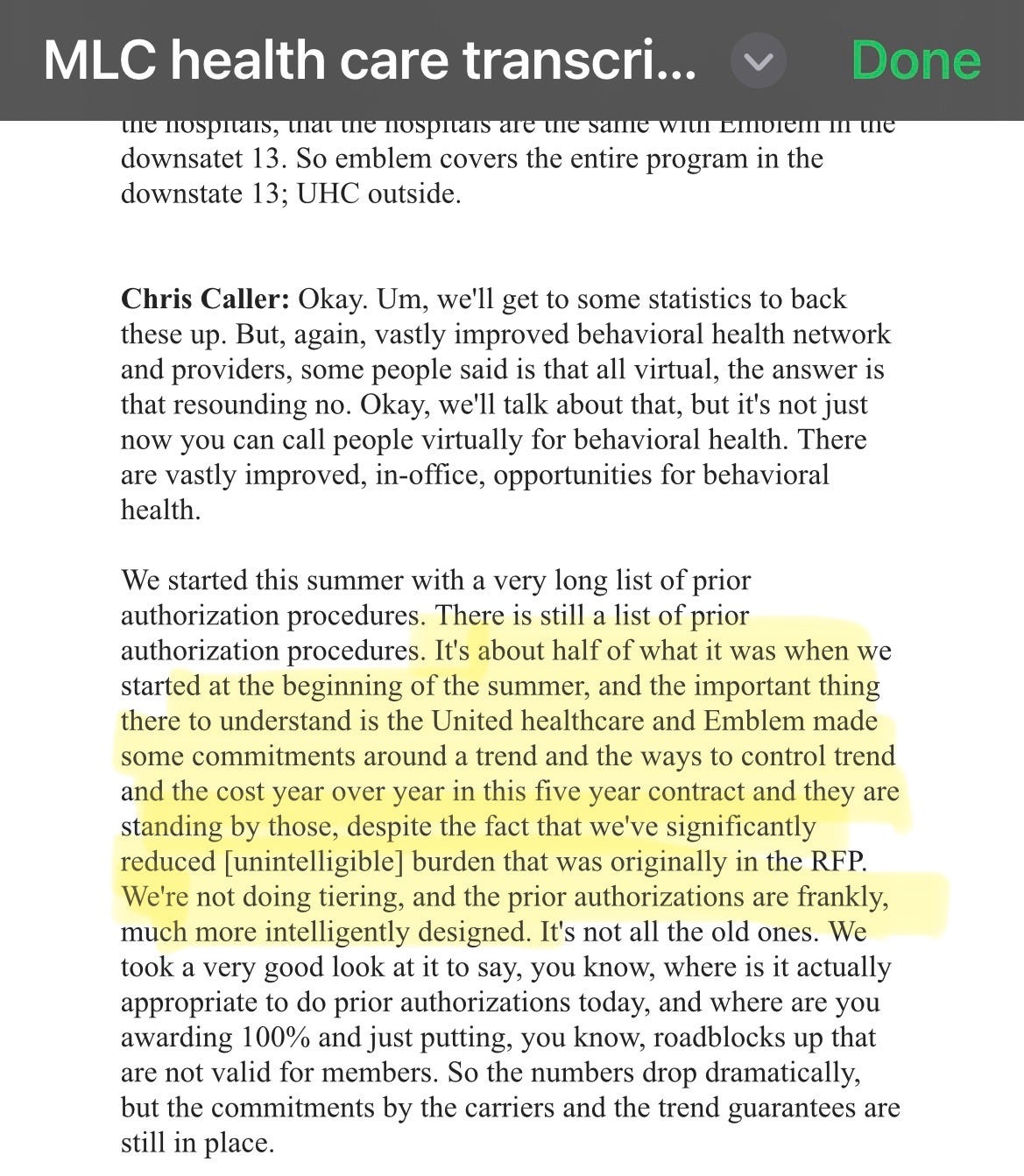 One might also be led to believe this is 50% less pre-authorizations than we had under our old Emblem/Anthem plan. However, leaked MLC minutes from a September 10th meeting adds more questions about this propaganda talking point.