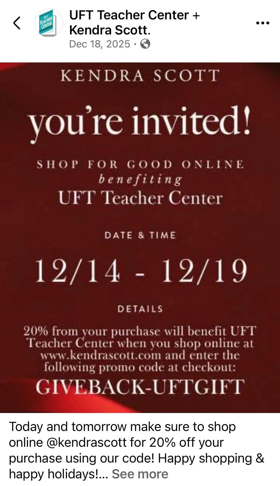 The video makes that plain. A union officer thanks Kendra Scott for its work with New York City public schools. A senior union staffer—introducing herself as the director of the Teacher Center—welcomes viewers to “our Kendra Scott event” and explains the incentive: shop, and the union benefits. The union is not a passive recipient of a donation. It is an active sales partner.